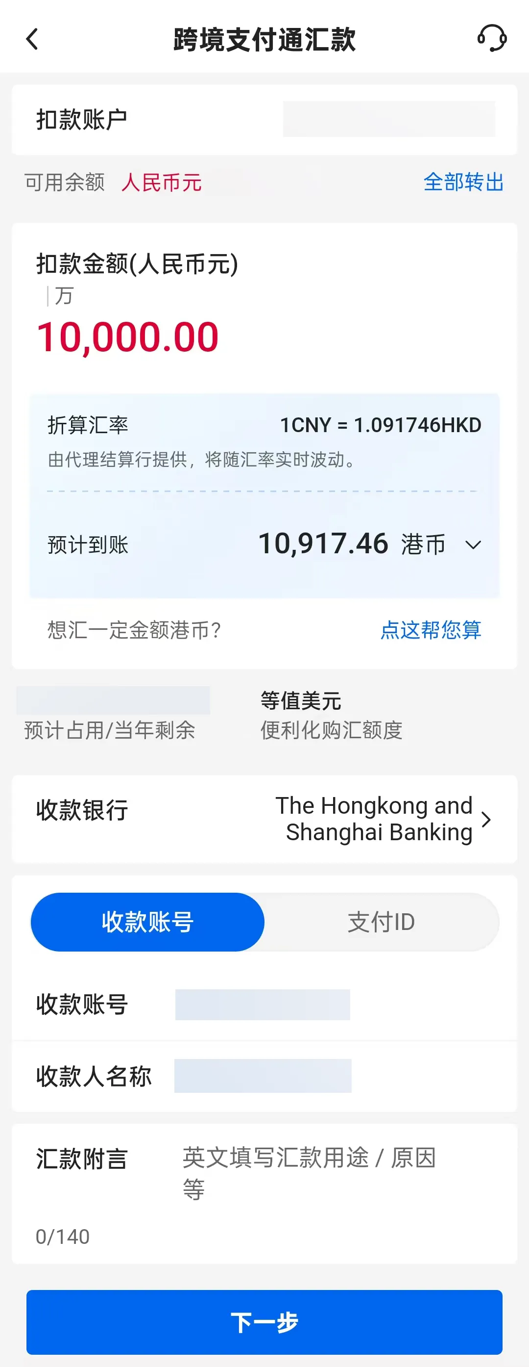 汇款时可以选择通过“手机号”或“银行账号”进行汇款。如果通过“手机号”汇款,需确认收款人已登记手机号码作跨境收款;